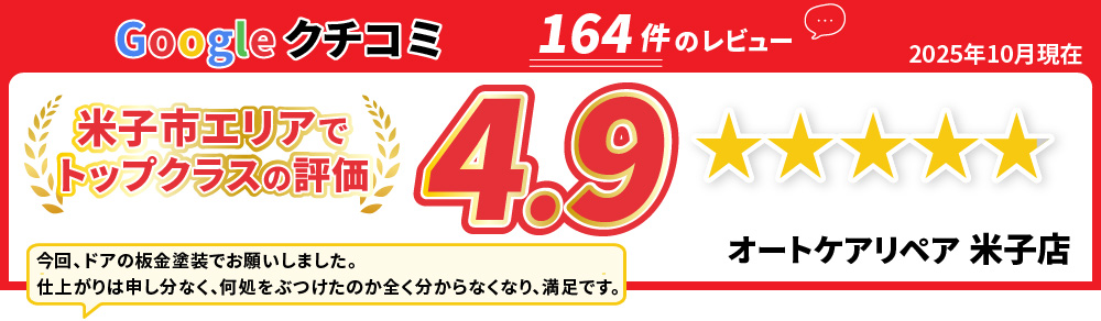 ・車体に傷をつけてしまい、板金塗装の整備をどこにしようかと迷っていたところオートケア米子さんの口コミ等を見て見積もりの依頼をしました。